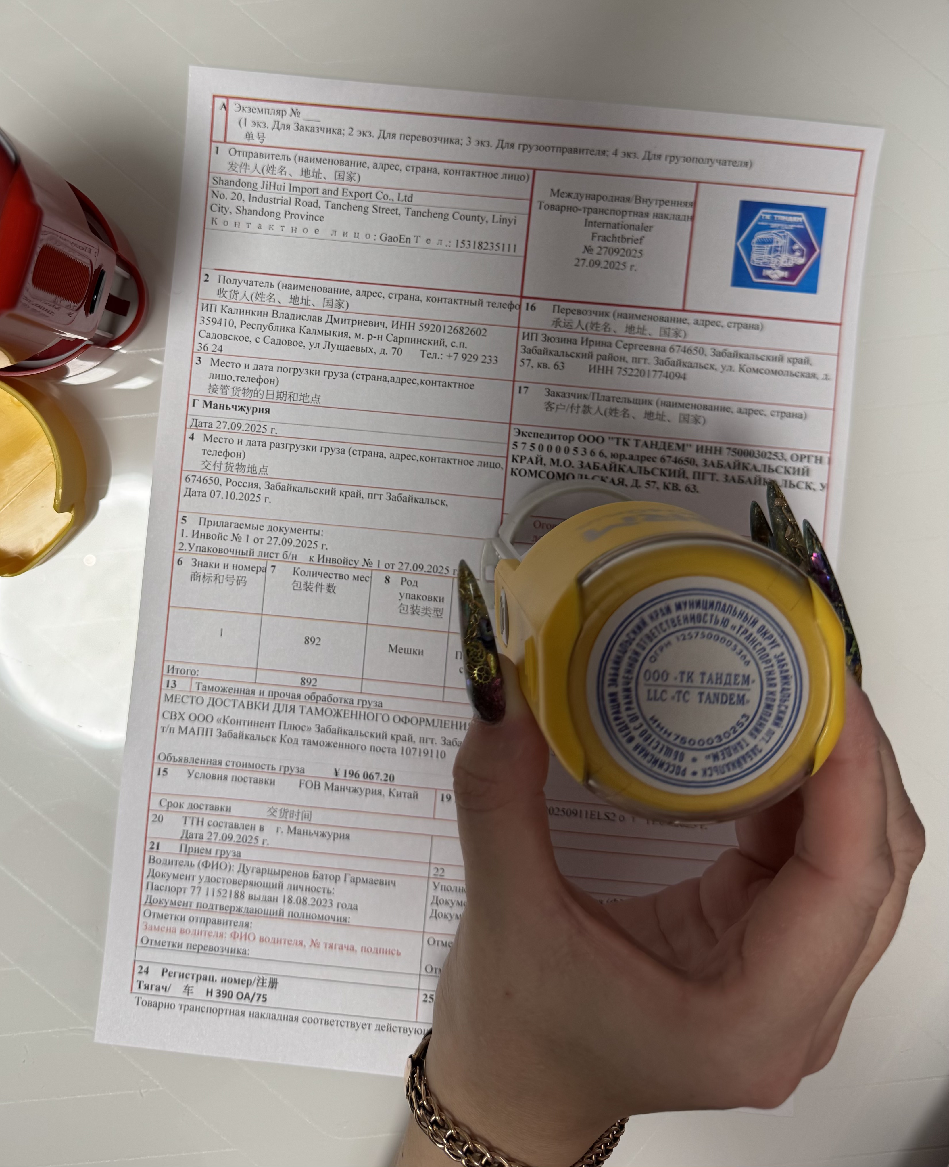 - Транспортные документы (международная транспортная накладная, упаковочные листы и тд), содержащие сведения о перевозчике, транспортном средстве и его водителе, а также о перевозимом грузе;